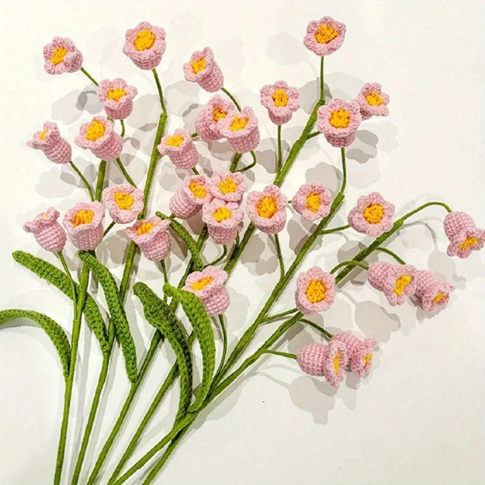 6 Crochet Flower Bouquet, 15.7  Artificial Lily of the Valley Crochet Flowers Handmade Knitted Flowers Crocheted