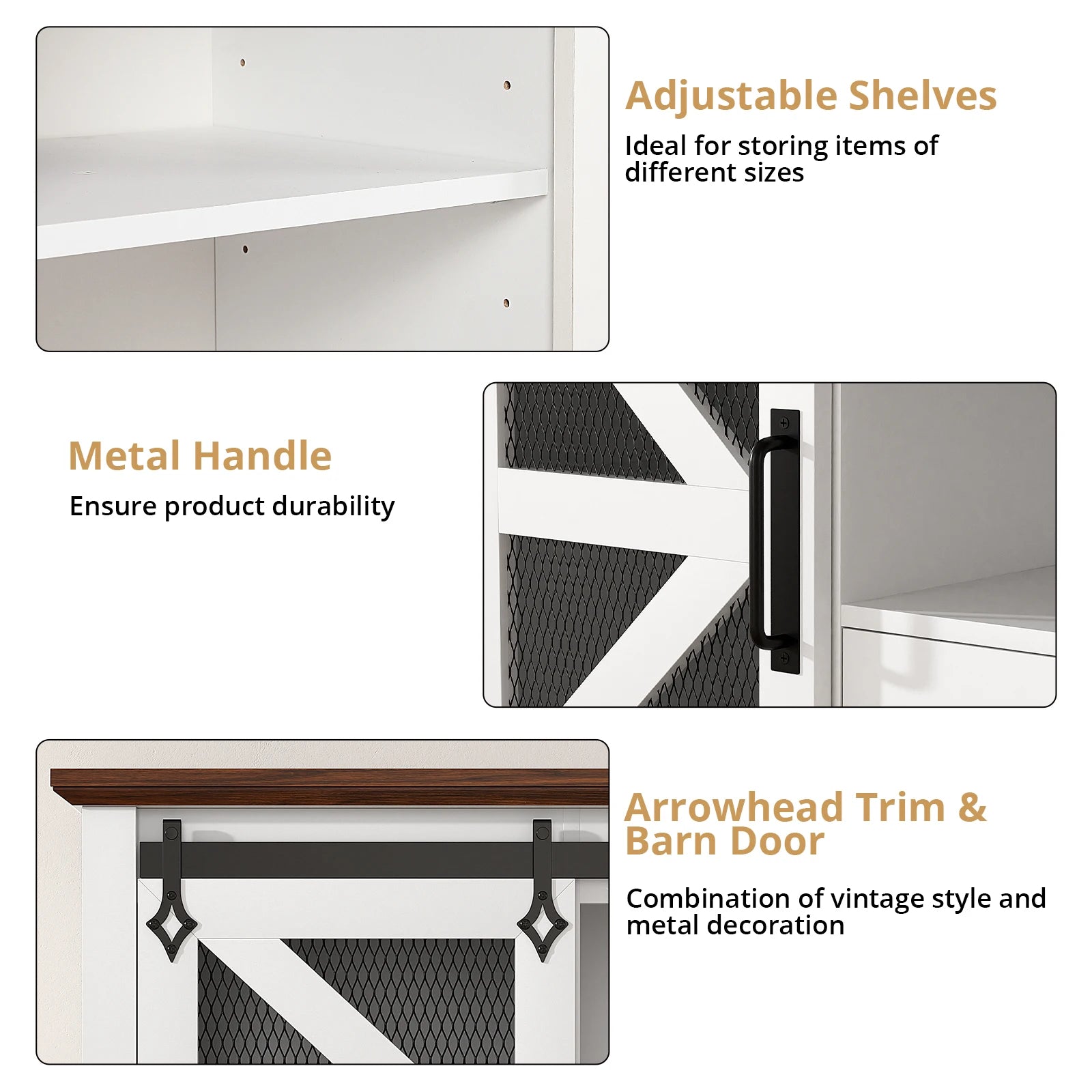 This farmhouse classic style TV stand is a perfect blend of modern and rustic farmhouse design, it measures 60“ L x 28.2 ‘H x 15.7’ W, it can fit up to a 60 inches TV, with two spacious storage cabinets and one drawer, with plenty of space for your TV and related entertainment equipment, the dividers in the storage cabinets can be freely adjusted, convenient for placing objects of different heights. All in all, this TV cabinet not only has very strong practical performance, but also can add personality and charm to your room, suitable for all decorative styles and increase the beauty of your living room or bedroom.