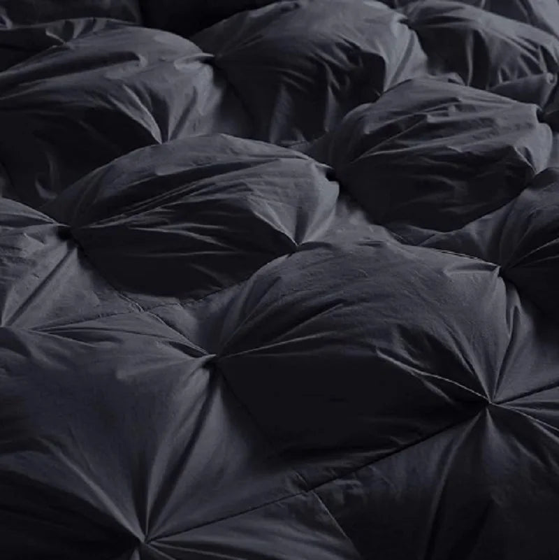 UNIQUE BLACK Pinch Pleat design brings elegant style and timeless good looks. Luxury down feather fiber comforter is soft, fluffy, warm, breathable, noiseless, medium weight for year-round comfort.