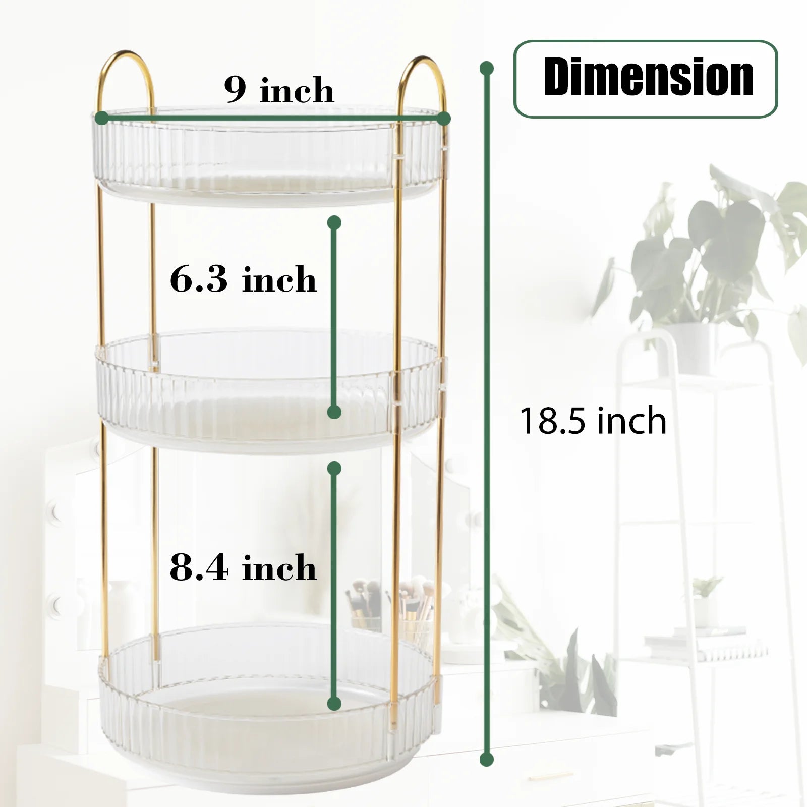 • 👑【3-Layer Large Capacity】: This makeup organizer for vanity, placed according to your own preferences, can be used to store perfume, nail polish, lipstick, powder blusher, eye shadow, base makeup, makeup powder and nail enhancement tools, as well as facial cleanser and other toiletries, spice rack and other kitchen supplies, which can meet your daily needs and save you 80% of space