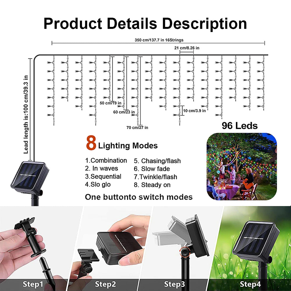 Solar Icicle Curtain Lights - 8 Modes
