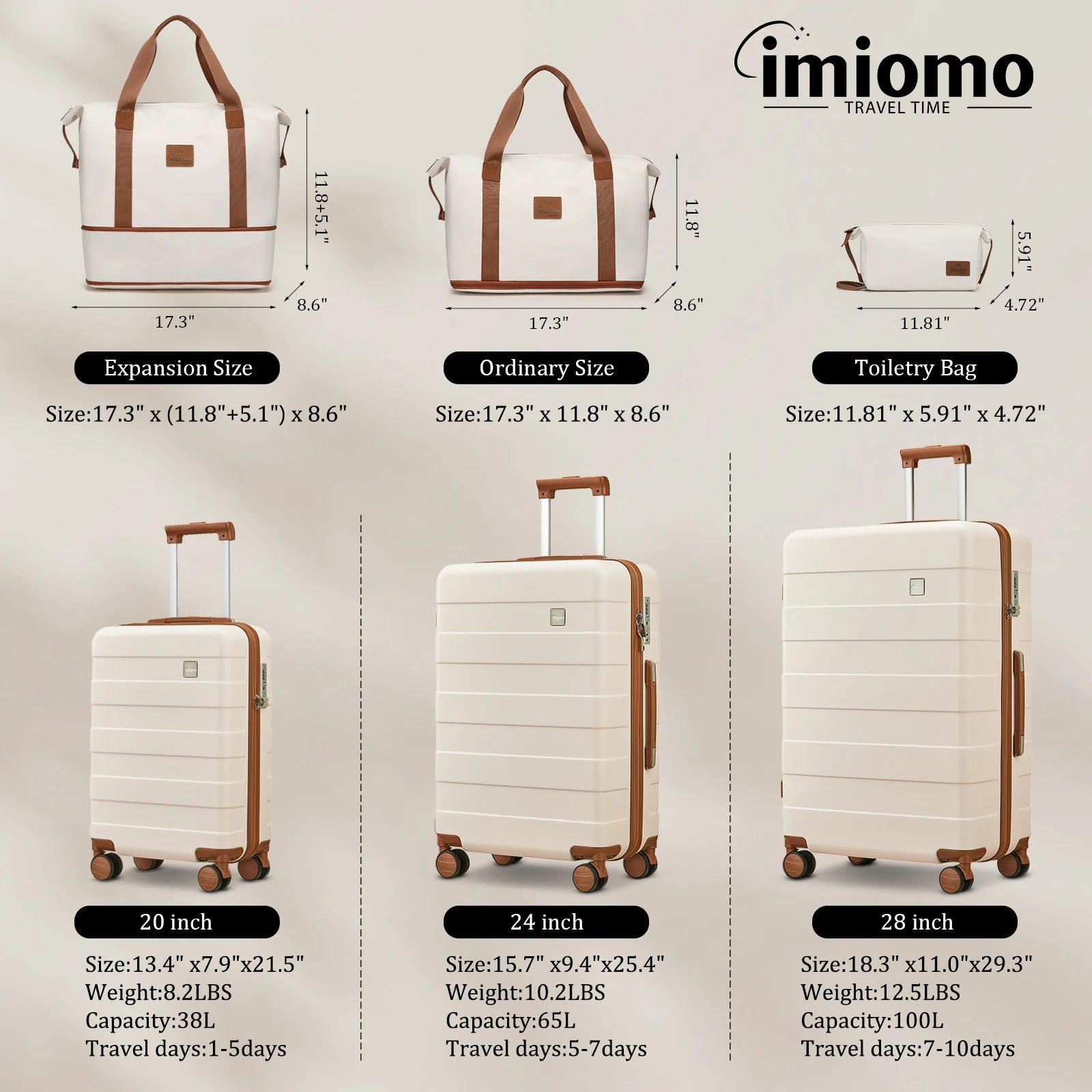 Travel Luggage Set 5 Piece (Lightweight, Hardside, Durable): Includes 20/24/28 inch luggage suitcase, waterproof expandable Travel Duffel Bag and Makeup Bag. Make your trip more convenient. Suitable for different types of travel (Business, Short or long Trip, Hiking, Family Travel, Weekend Getaway, Overnight, Chic Travel, Train Travel and so on. )