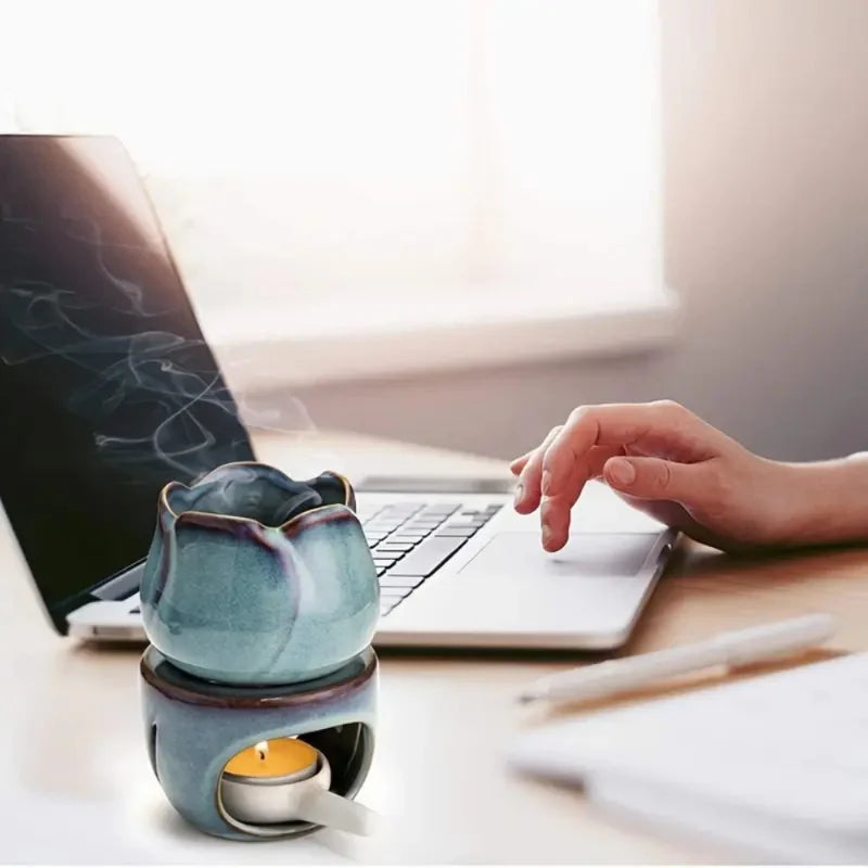 Tulip-Shaped Ceramic Aromatherapy Diffuser & Candle Holder Set - Essential Oil Burner with Wax Melt Warmer for Home Relaxation