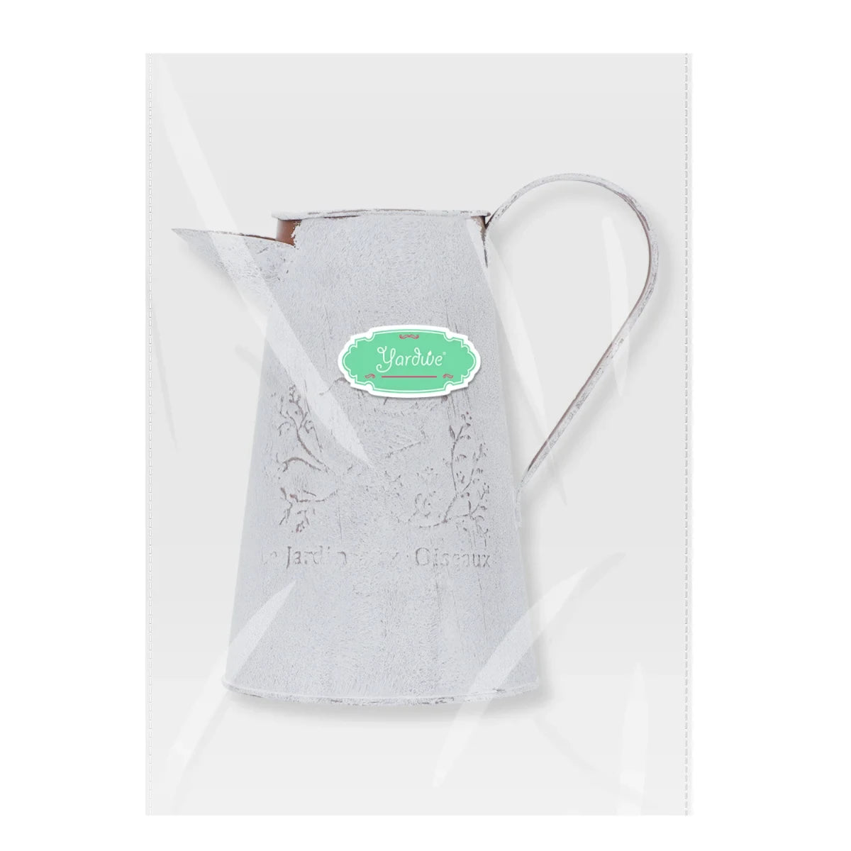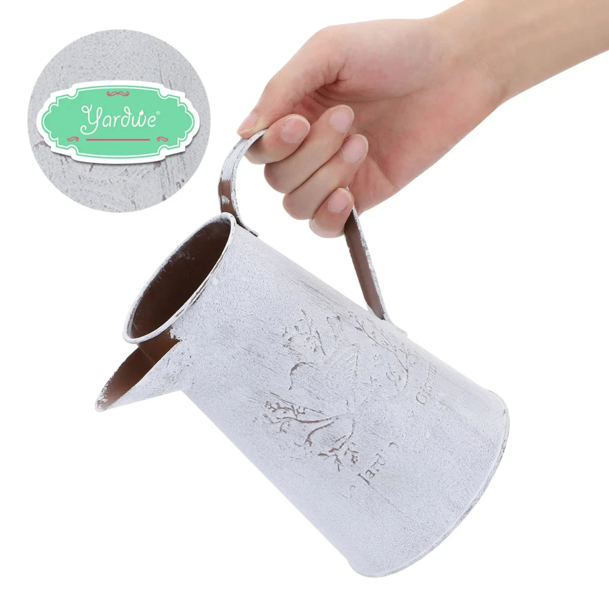 Constructed of galvanized sheet metal, this styled metal pitcher rusted and faded to give it the feel of rustic charm.